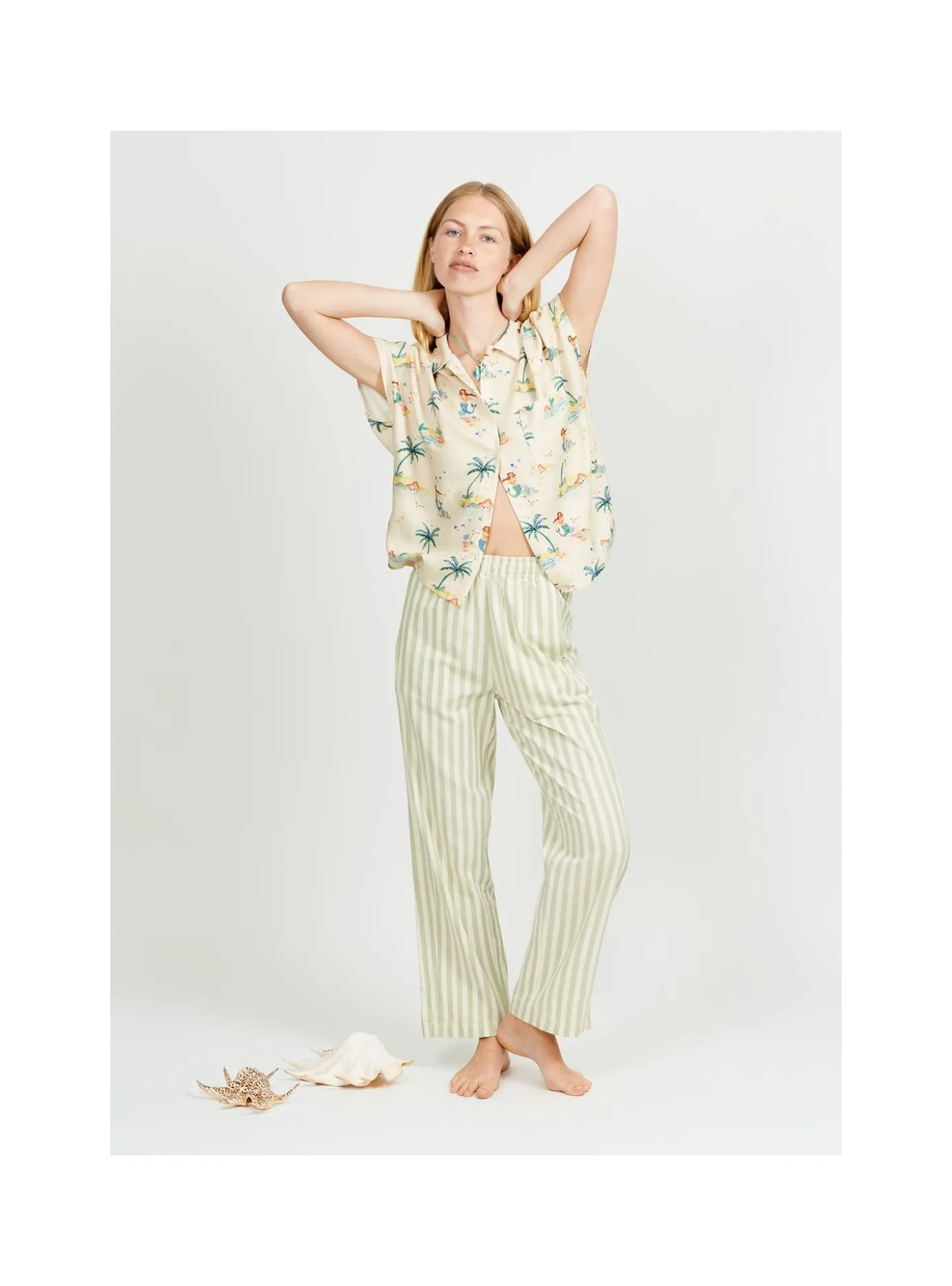 • Julie porte le pantalon sauge et cobalt en taille S et mesure 1m75.