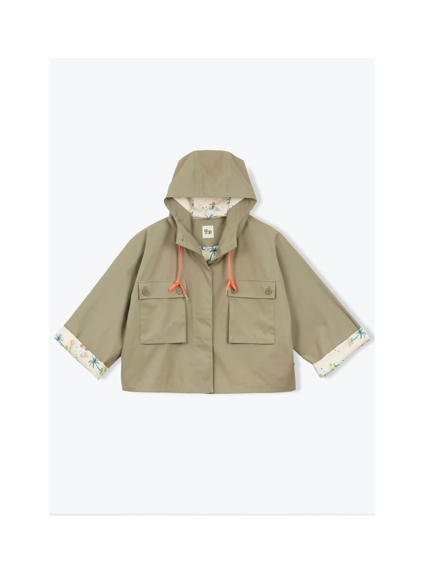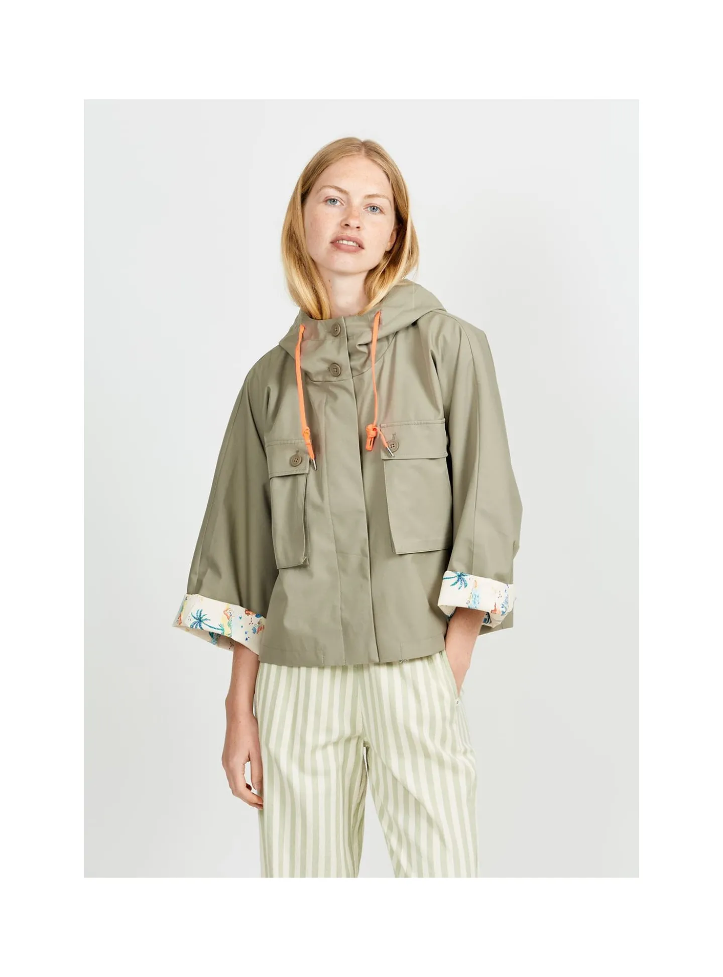 • Capuche avec cordon fantaisie coloris corail fluo.