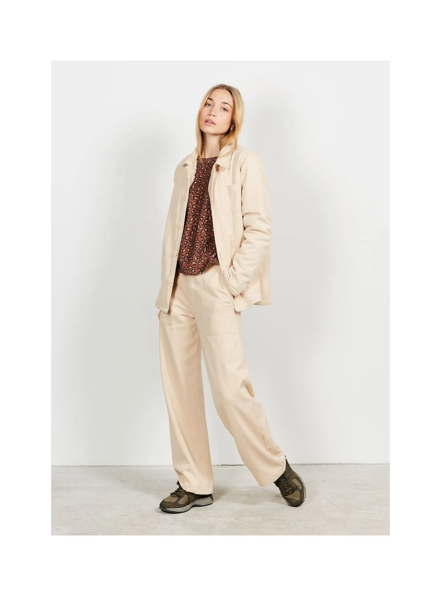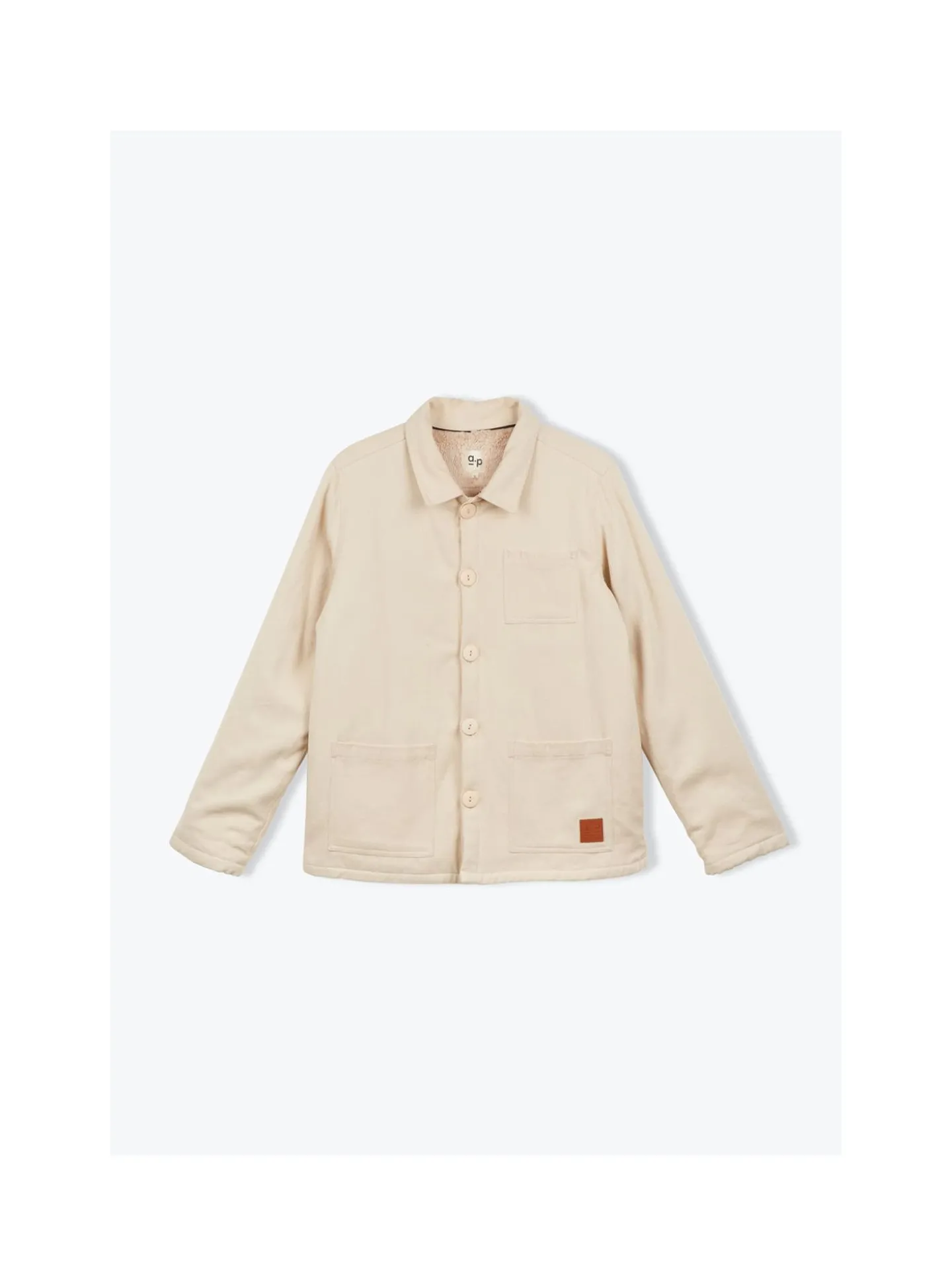 • Veste de travail craie , forme droite, col chemise avec boutonnage devant, manches longues.